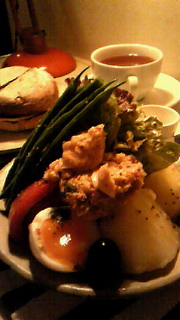 メニューは自家製のパンというかマフィンがメインで、それにスープかサラダがセット。