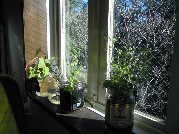 窓際にはすくすく育つミント。